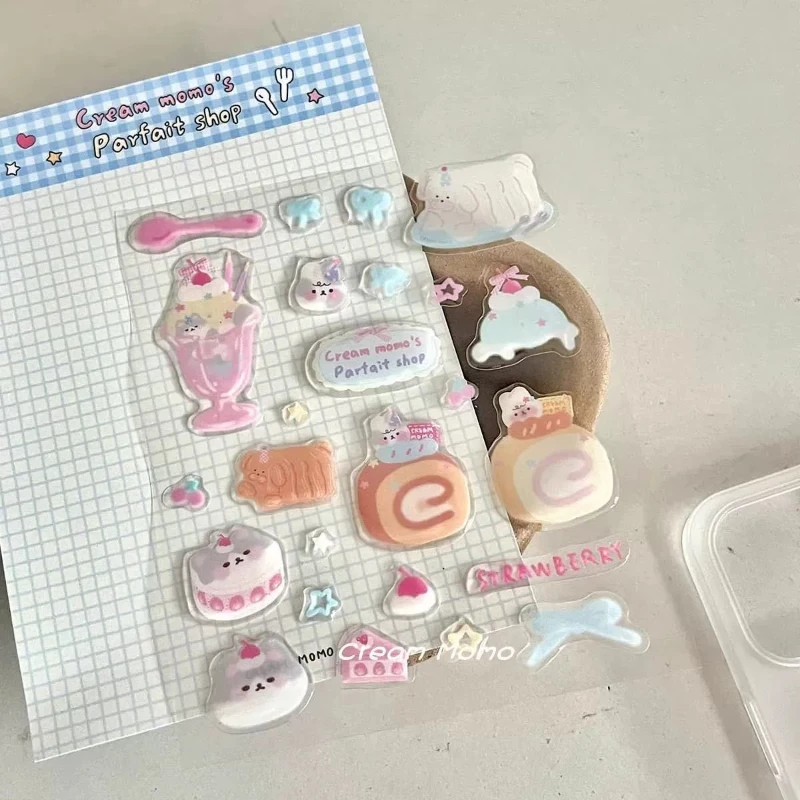 Cute Cartoon Sweety Cat Jelly Relief Stickers Girlish 3D Epoxy Resin Decal for Phone Case Tablet Camera Kawaii Kitten Decoration $1.93