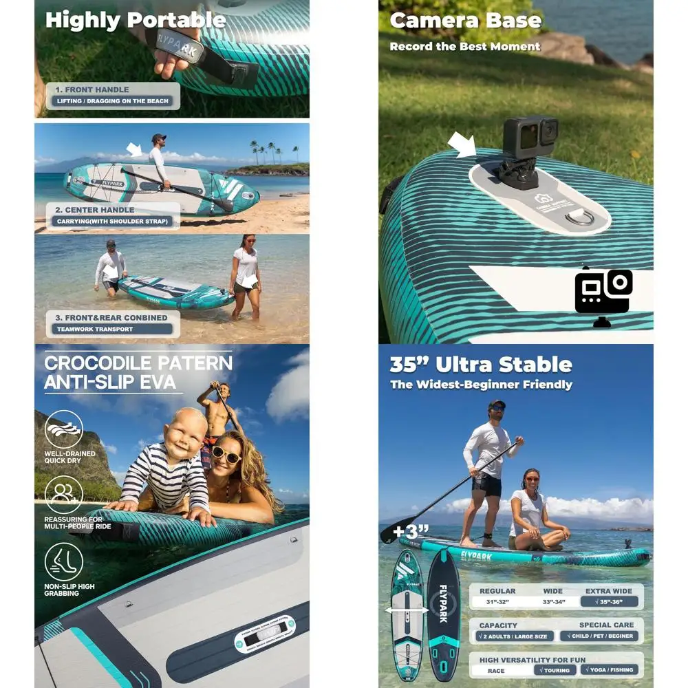 Family-Friendly 35 Wide Stable SUP Paddleboard, Supports 430lbs, for 3 People, with Camera Mount & Shoulder Strap $370.53