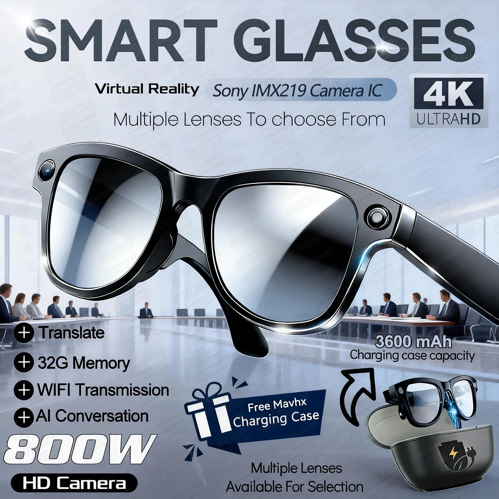 New 800W 4k HD Camera Smart Glasses Men 3600mAh Power Bank 100+ Languages Translation Recording Videos Music Player Call Glasses $98.69