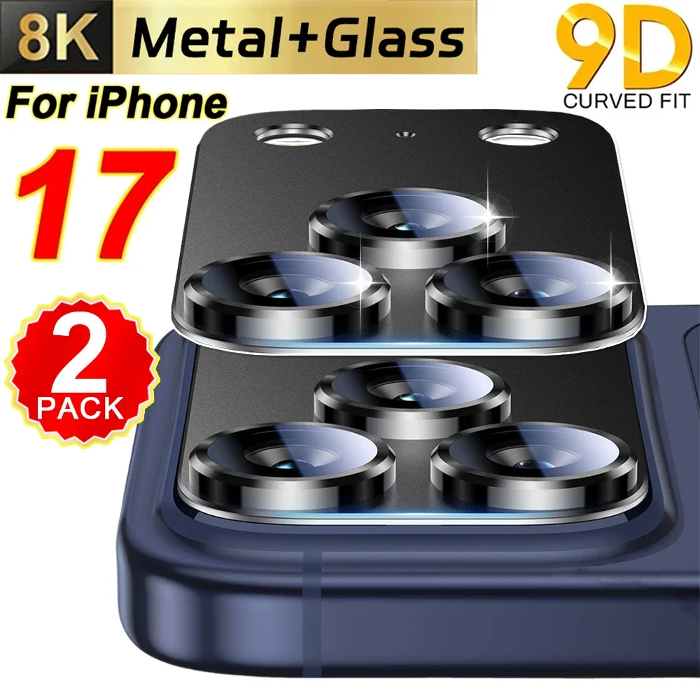 2Pcs Metal Lens Glass For iPhone 17 Pro Max Air 17Pro Back 9D Full Cover Lens Ring Protector For iPhone17 Camera Tempered Glass $7.80