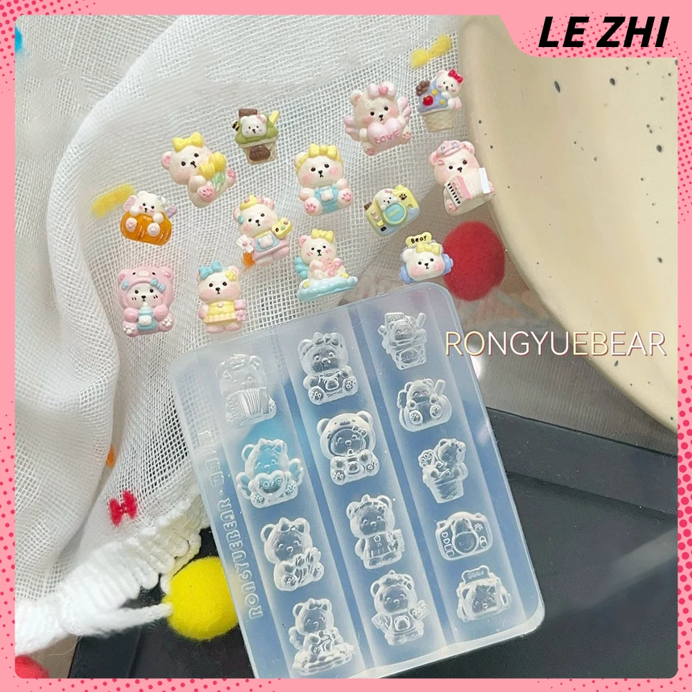 Cute Cartoon Bear Pig 3D Acrylic Nail Art Mold Decora Diy Design Silicone Accordion Baby Bottle Camera Love Milk Bread Nail Mold $7.49