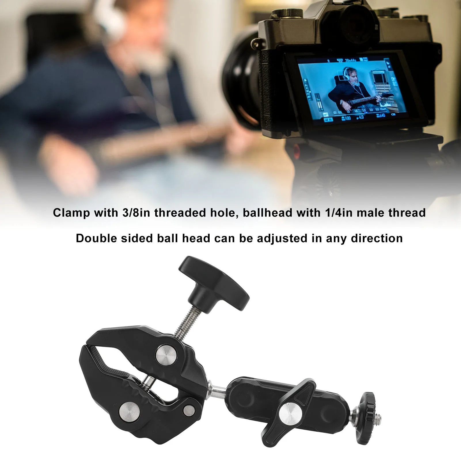 Super Camera Clamp Mount 360 Degree Ballhead Magic Arm Double Ball Head Adapter with 1/4in Male Thread Double Ball Head Adapter $17.91