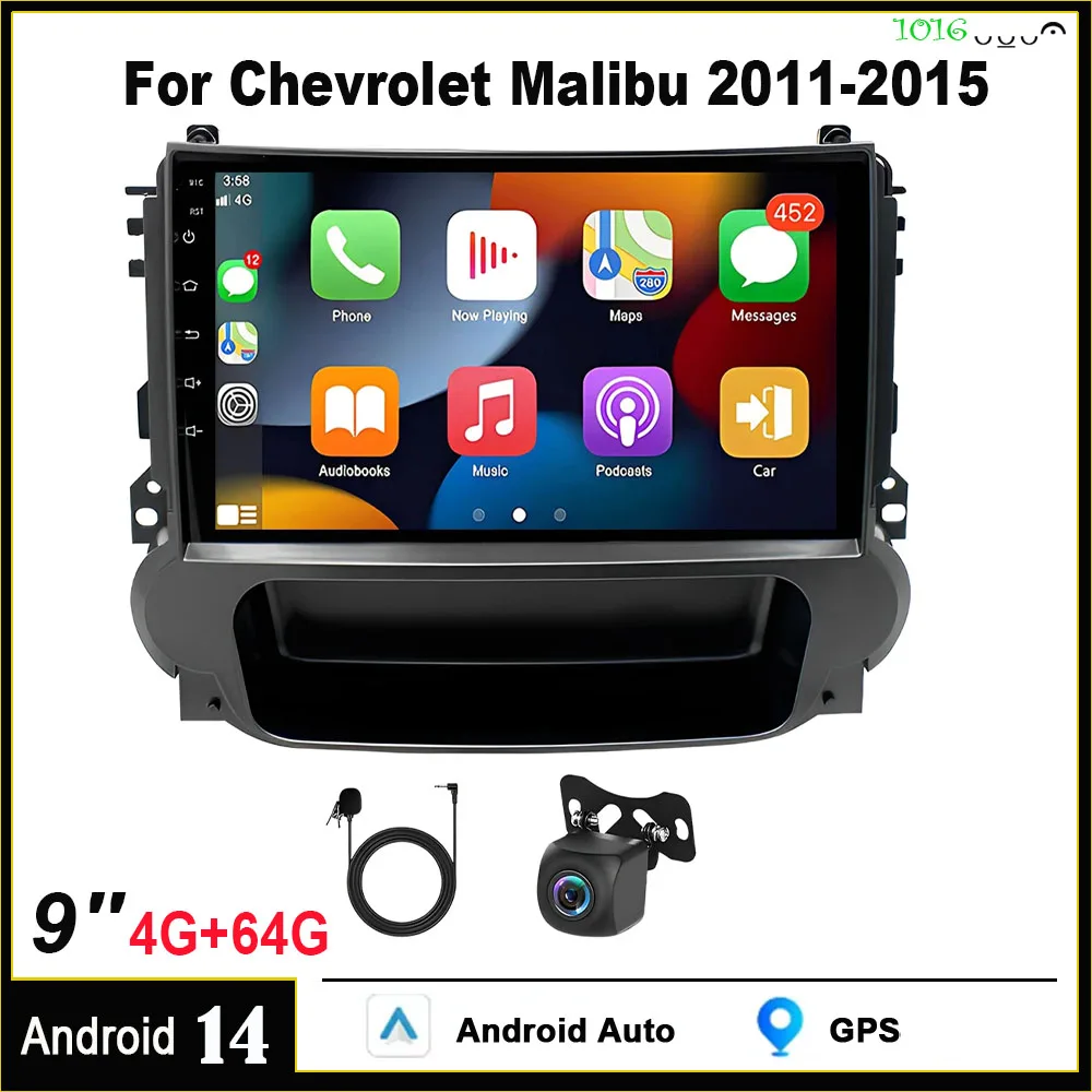 Android 14 Car Navigation 9in Built-in CarPlay + Android Auto / 4 + 64G + AHD Camera + Microphone for Chevrolet Malibu 2011-2015 $100.74