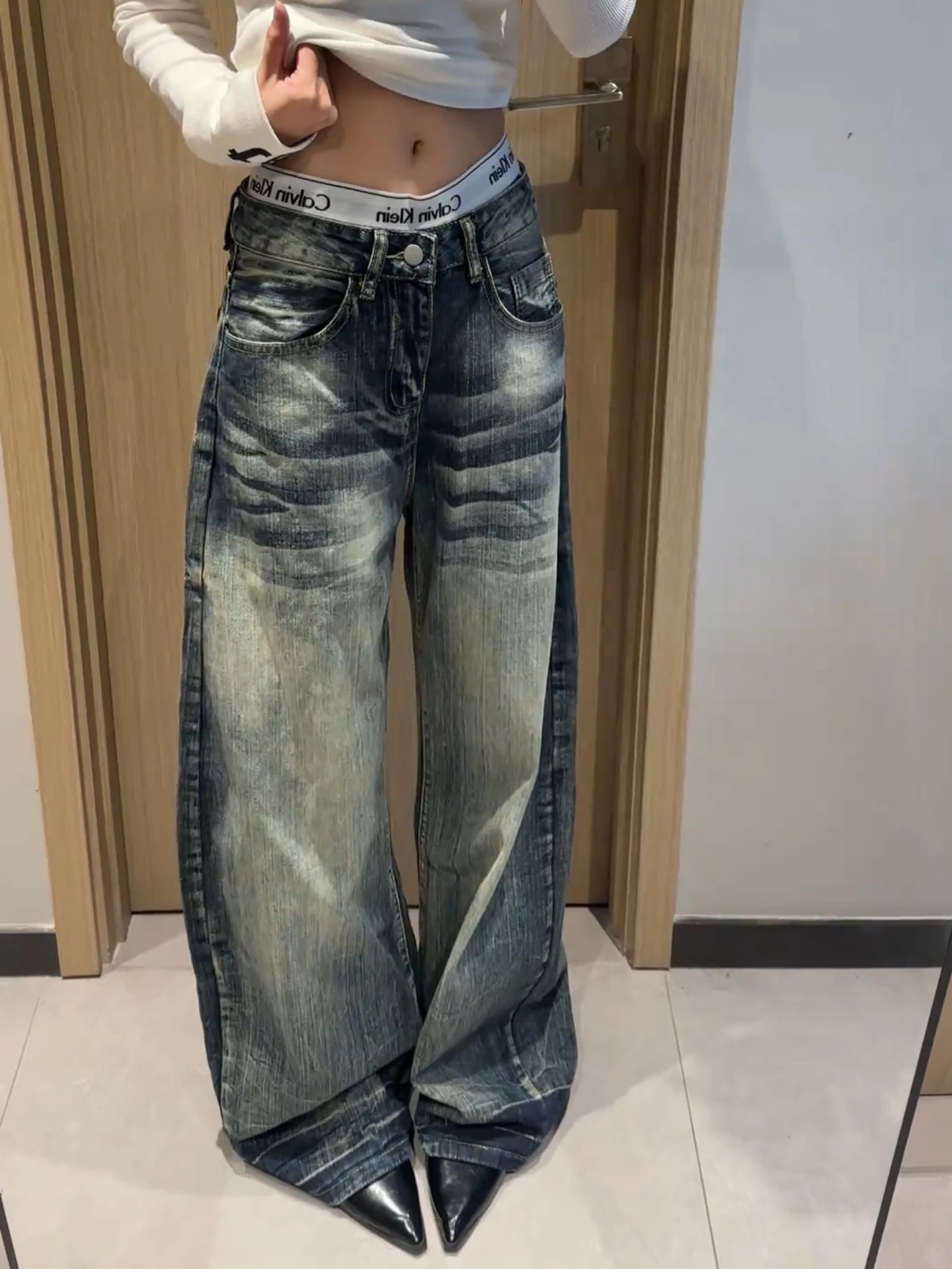 Loose Women's Denim Jeans High Waist Vintage Washed Knife Casual Straight Leg Trousers Spring Summer Autumn Fashion $38.43