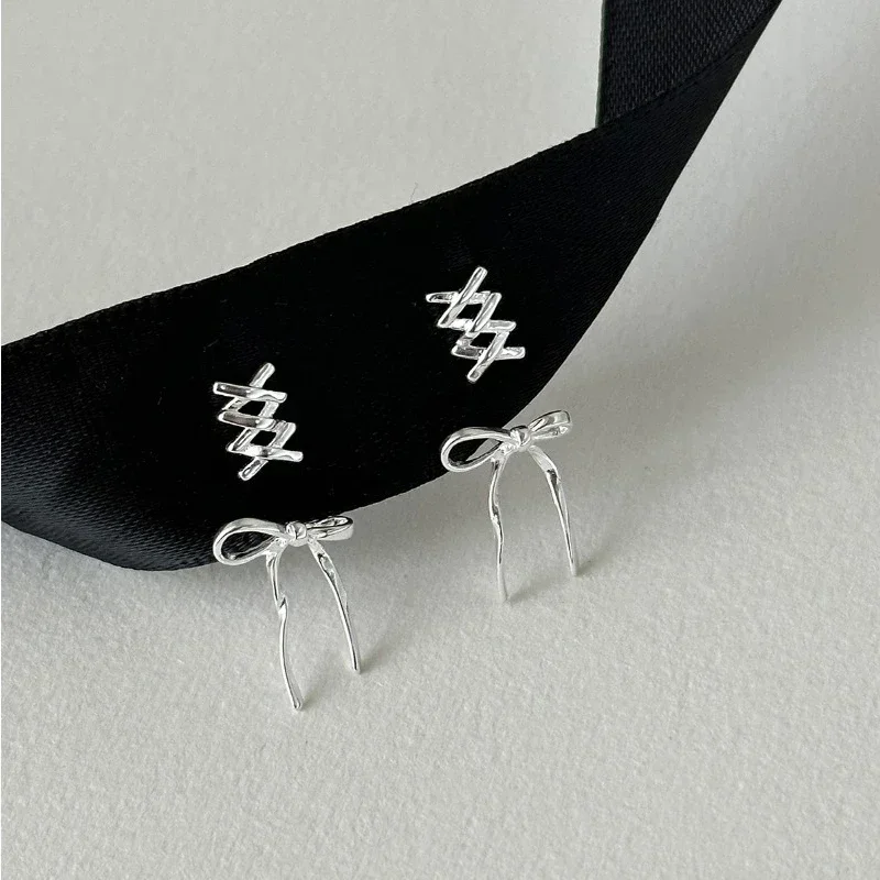 Fashion Silver Color Bowknot Stud Earrings for Women Exquisite Sweet Metal Hollow Line Earrings Jewelry Accessories Party $1.96