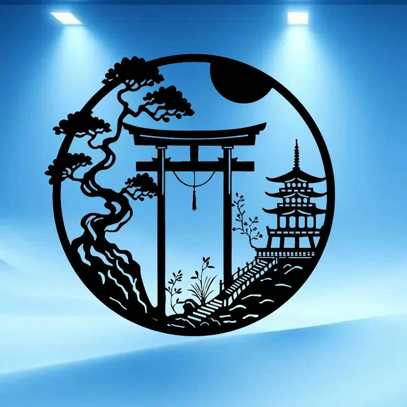 Fashion New Elegant Japanese Bird & Torii Gate Metal Wall Art, Easy-to-Hang Sparrow Door Sculpture for Modern Home Office Decor $19.52