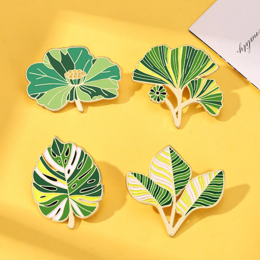 4pcs Cute Cartoon Green Plant Enamel Brooch Creative Ginkgo Monstera Deliciosa Lapel Pin Metal Badge Jewelry Gift for Kid Friend $4.13