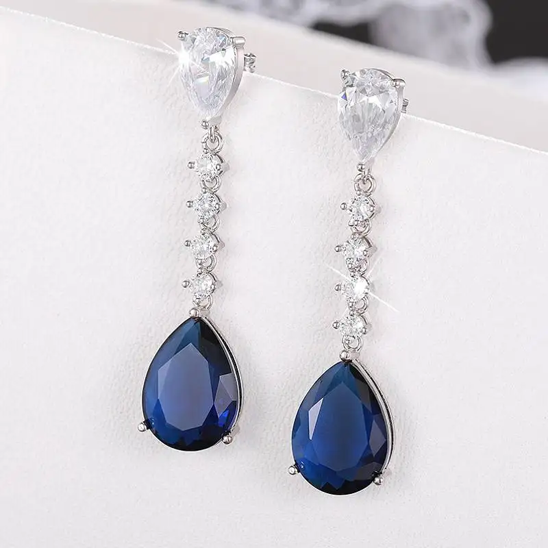 Huitan Elegant Women Long Drop Earrings Inlaid Shiny Blue/White CZ Graceful Engagement Party Charming Accessories Trendy Jewelry $4.99