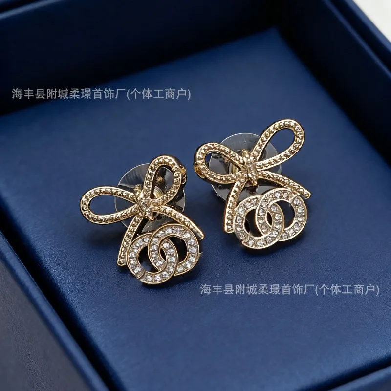 The New Small Full Diamond Bow Stud Earrings Are Fashionable, Simple and Versatile, Designed for Direct Wholesale. $28.01