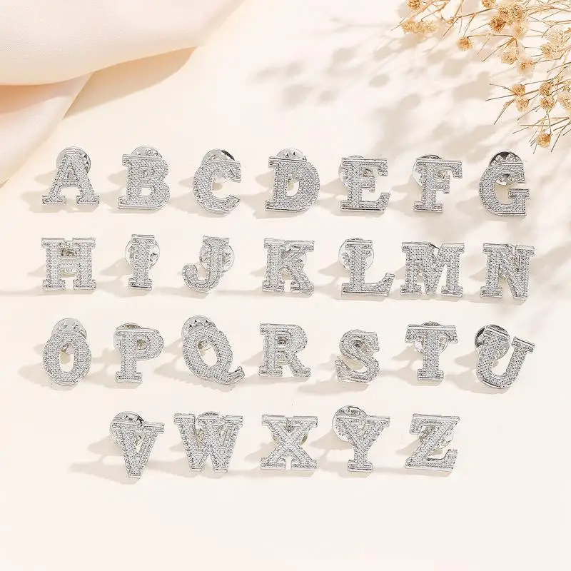 2PCS Initial A To Z 26 Letters Pin Silver Color Fashion Metal Alphabet Women Men Suit Collar Lapel Brooch Pin Accessories $0.58