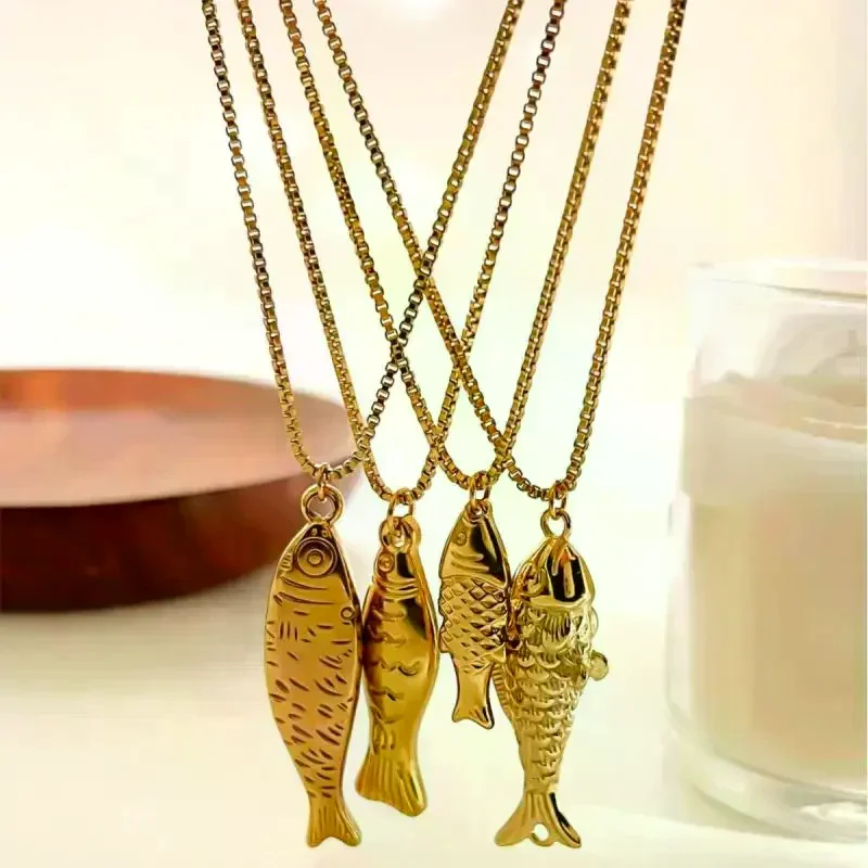 New Design Stainless Steel Gold Plated Fish Pendant Clavicle Necklace For Women Waterproof Beach Party Jewelry Accessories $2.47