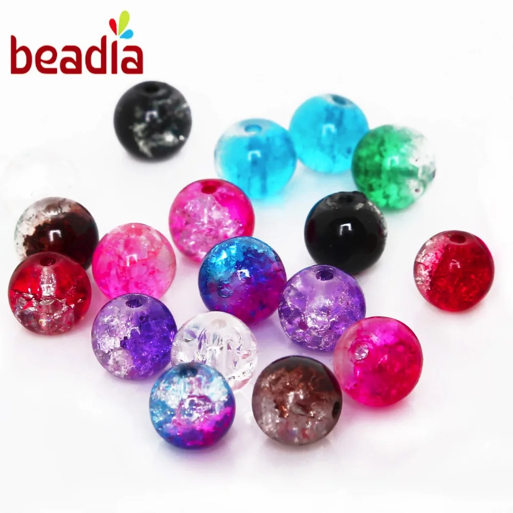 Round Glass Crackle 8mm Loose Beads Wholesale 50pcs 1 String Fit Handmade Bracelet Necklace DIY Craft Making Good Jewelry Gifts $1.10