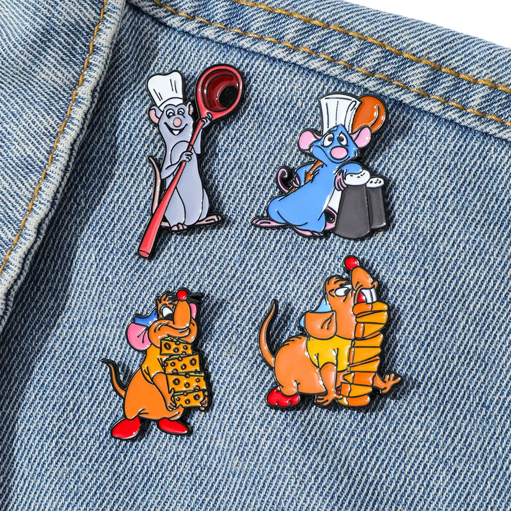 Ratatouille Remy Cartoon Metal Pin Cheese Chef Alloy Drip Enamel Brooch Disney Pixar Gift For Foodie Fans Collectors Fashion $1.23