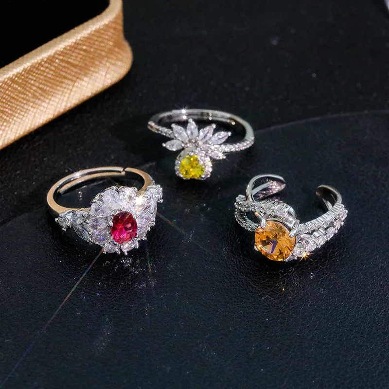Chenrui European and American Colored Zircon Fashion Light Luxury Ring Women's Irregular Opening Jewelry Wholesale $1.18