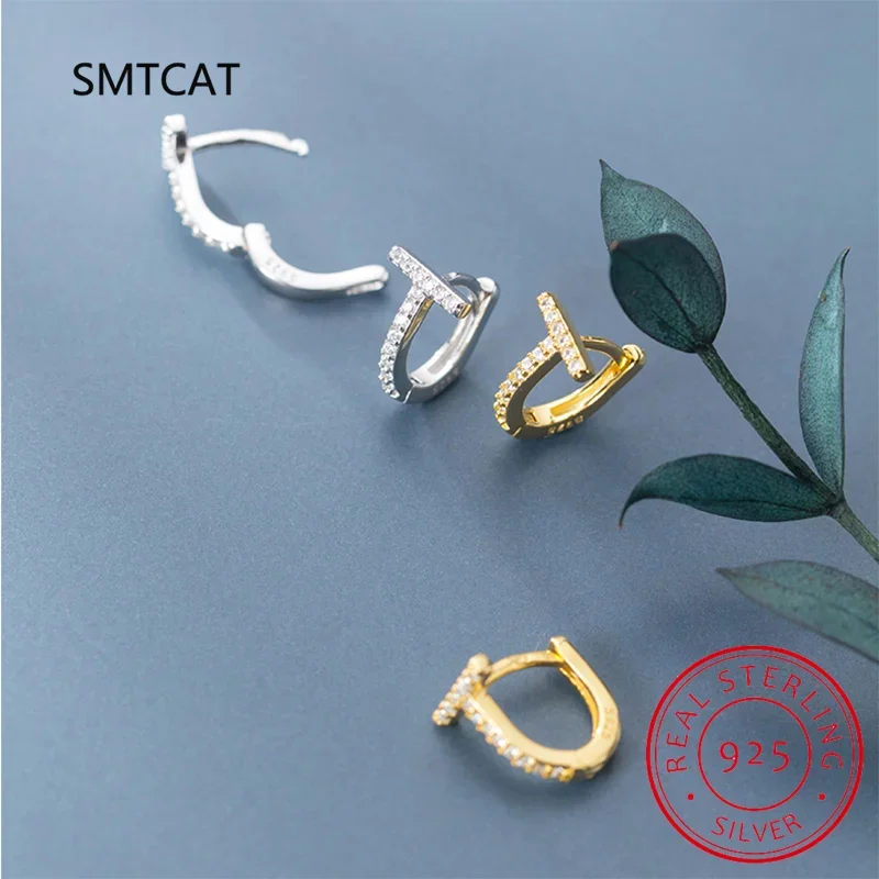 Real 925 Sterling Silver Fashion Geometric Letter T Charm Hoop Earring For Women Wedding Party Fine Jewelry Huggies DA2164 $4.39