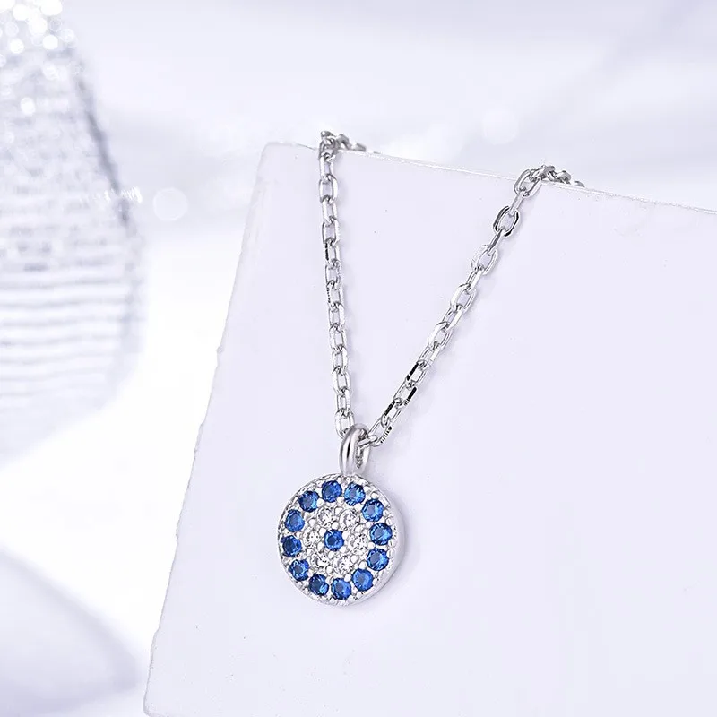 Round Created Blue Spinel 925 Sterling Silver Devil Lucky Eyes Pendant Necklace for Woman Fashion Gemstone Jewelry Birthday Gift $3.56