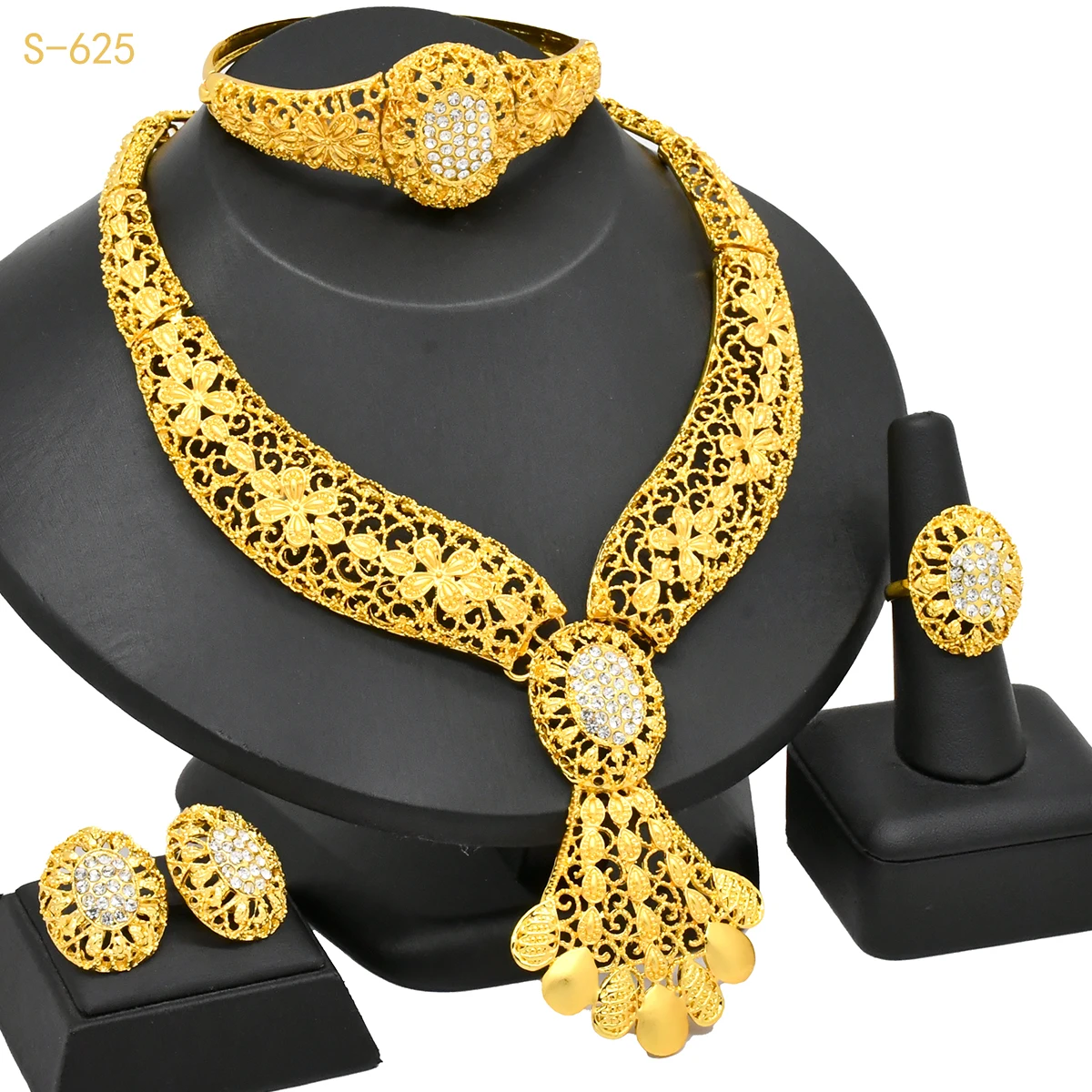 Fashion Dubai 24K Gold Color Jewelry Set for Women Nigeria Wedding Necklace Earrings Bracelet Ring Bridal Jewellry Accessories $9.31