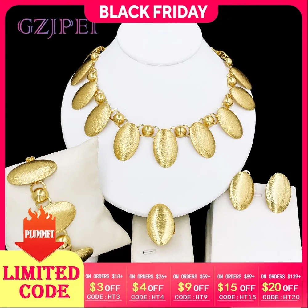 GZJPEI 4Pcs Jewelry Set 18K Gold Color Oval Drop Pendant Necklace Bracelet Chic Earring Ring Dubai Nigeria Wedding Jewellery $25.31