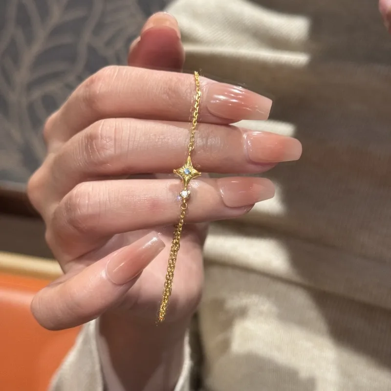 Fashion light luxury gold four-pointed star bracelet women's niche design sense simple and versatile high sense inlaid jewelry b $5.97