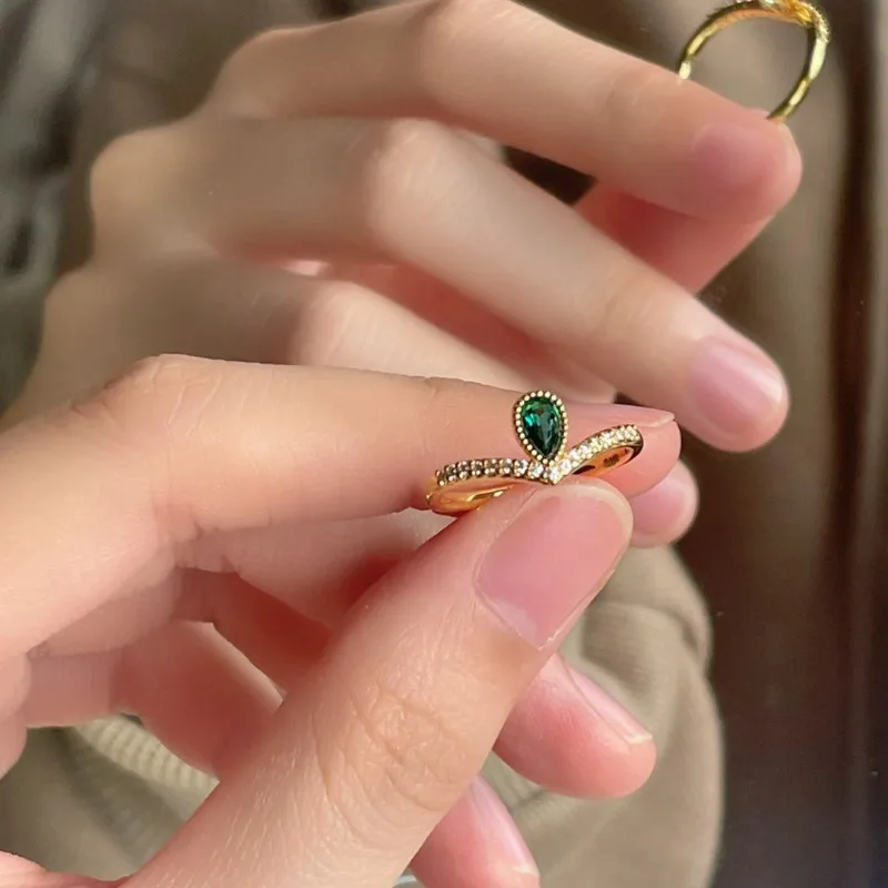 French medieval exquisite and elegant golden water drop ring female niche design fashionable light luxury high-end V-ring $8.60
