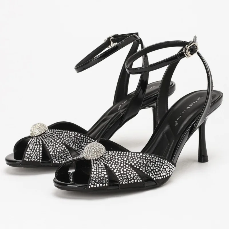 Shell and Crystal Embellished Party Sandals Women's Round Open Toe Thin High Heels Summer Buckle Strap Runway Catwalk Shoes $90.37