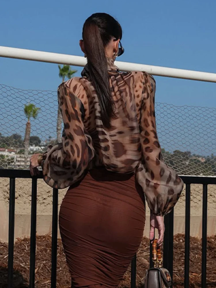 Women Long Sleeve See Through Scarf Collar Tops Fashion Leopard Printed Chiffon Blouse 2026 Spring New Female Shirts High Street $18.47