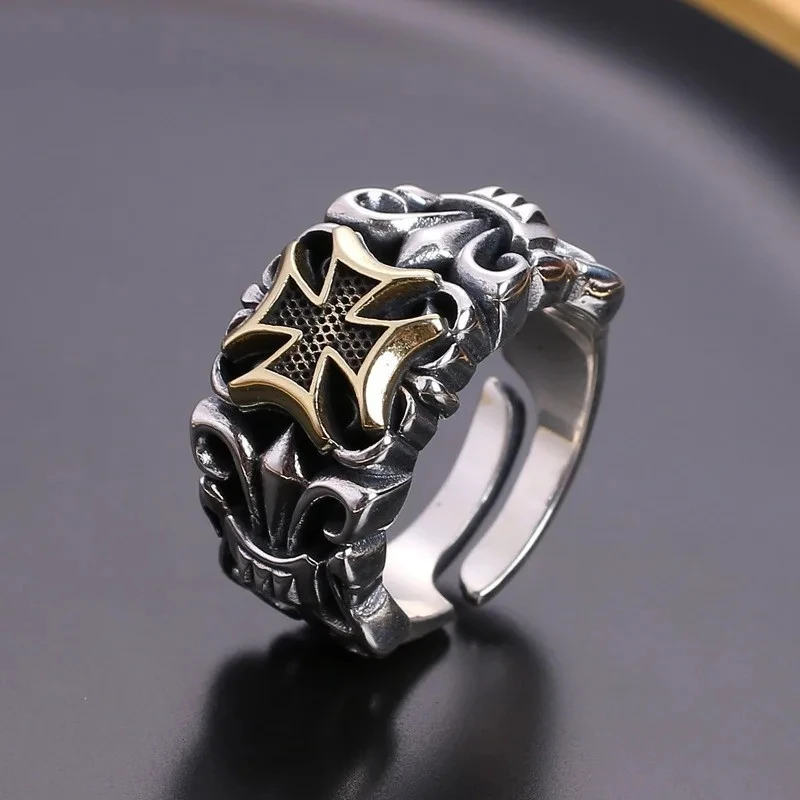 New Punk Large Cross Ring Adjustable Size Fashion Men's Personalized Design Jewelry Street Retro Gothic Trend JewelryAccessories $2.42