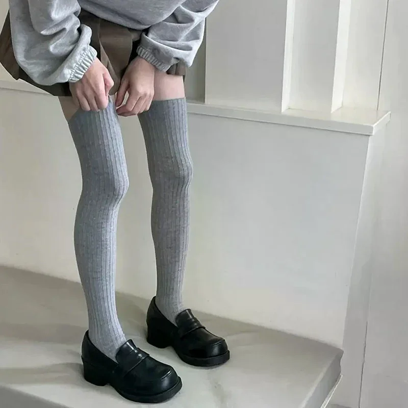1Pair Fashion Pure Cotton Knee-high Socks Solid Color Keep Warm Calf Socks Foot Warmers Fall Winter $0.74