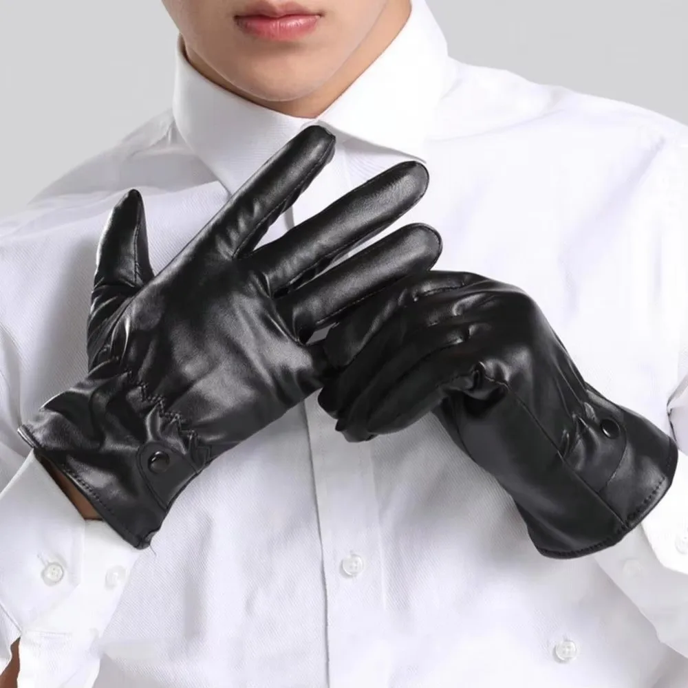 Fashion Black Leather Gloves Non-Slip Warm Driving Mittens Windproof Full Finge Touch Screen Gloves Men $4.47