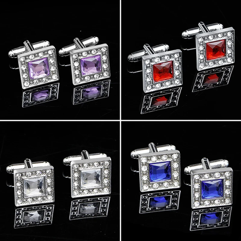 Colored Zircon Square French Cufflinks Fashion Men's Business Banquet Suit Shirt Cuffs Buttons Luxury Wedding Cuff Links Gifts $2.37