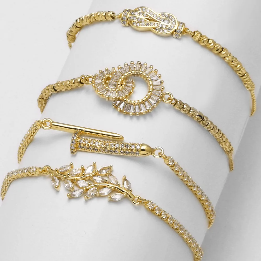 ASJEWELRY Dainty Clear Crystal Leaves Bracelets for Women Gold Plated Box Chain Geometric Bracelets CZ Jewelry Gifts brte79 $2.66