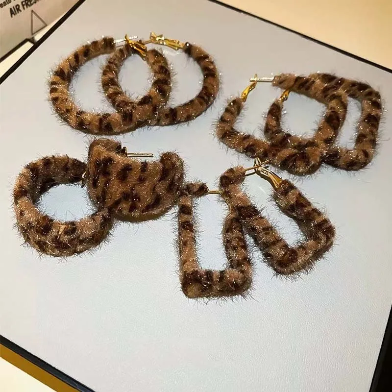 Vintage Brown Plush Leopard Print Hoop Earrings for Women Exaggerated Large Round Circle Geometric Earring Jewelry Birthday Gift $5.66