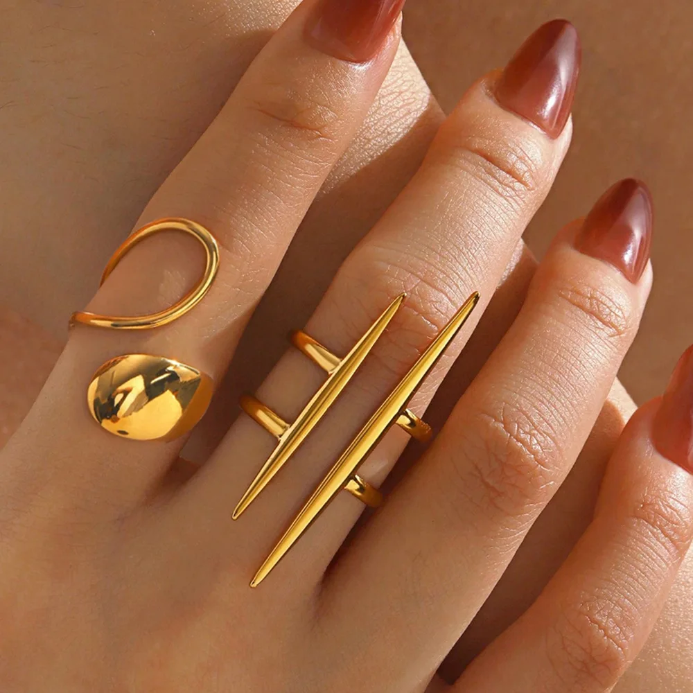 2pcs Punk Stainless Steel Ring Set Vintage Parallel Lines Open End Rings for Women Anti Allergic Charm Daily Jewelry Accessories $2.80