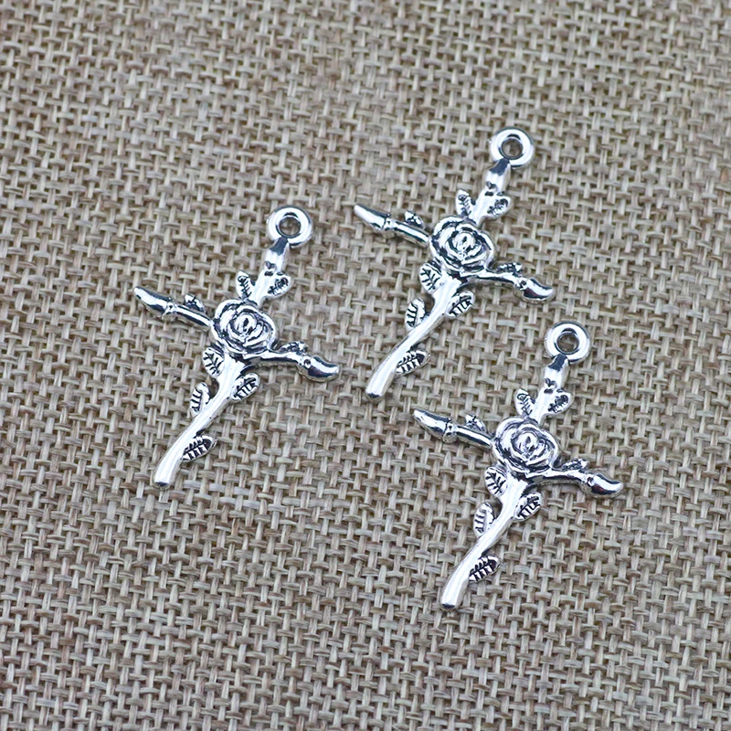10 Pieces 24*35mm Antique Silver Color Cross Flower Wicca Charms Pendant Keychains Accessory For DIY Jewelry Making $1.62
