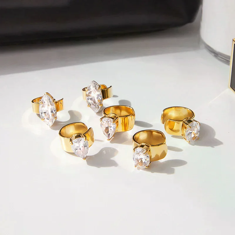 Geometric Cubic Zirconia Earrings For Women Minimalist 18K Gold Plated Stainless Steel Clip Earrings Fashion Jewelry $3.60