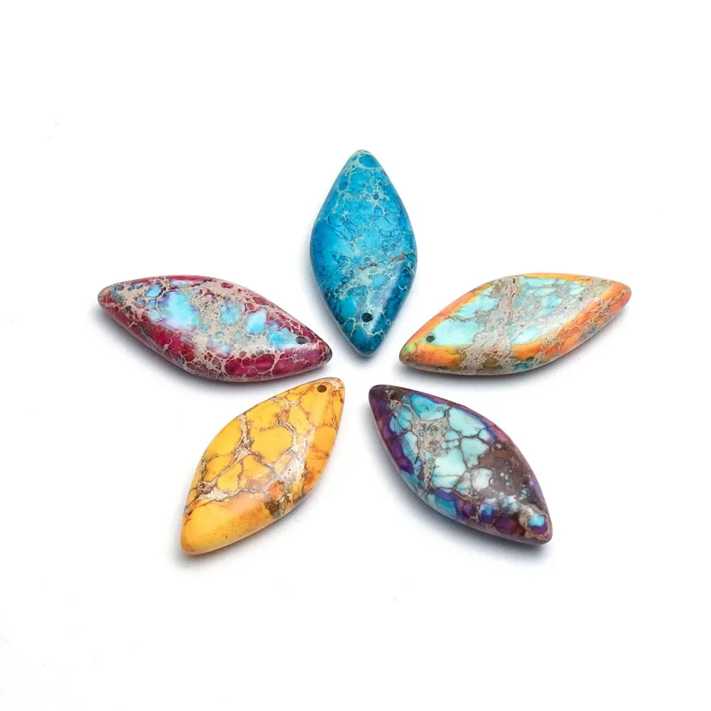 1PC 16x35mm Rhombus Shaped Imperial Jasper Stone Beads Gemstone Pendant Bead Polished SingleHole Hanging DIY Jewelry Accessories $2.41