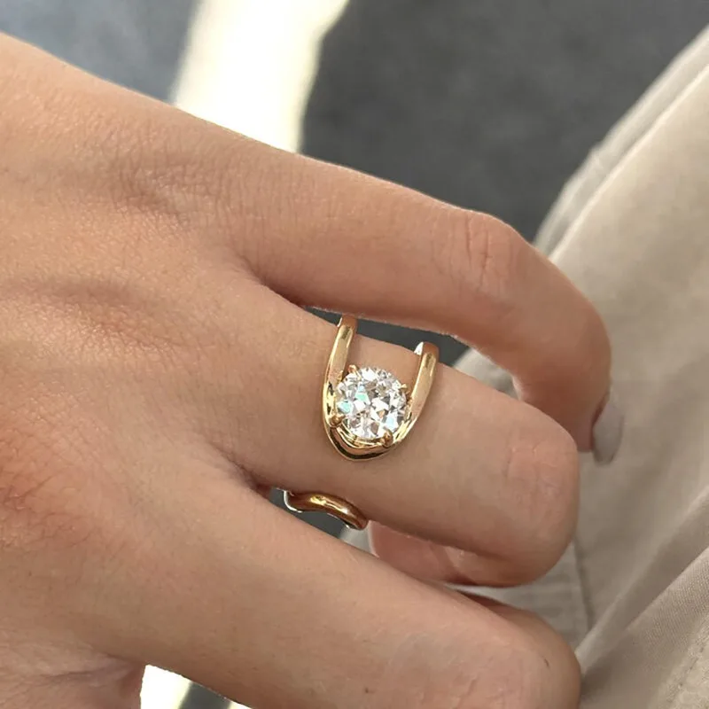 Xiaohongshu same gold wide stone U-shaped double-layer ring female inlaid zircon niche fashion simple high sense $9.29