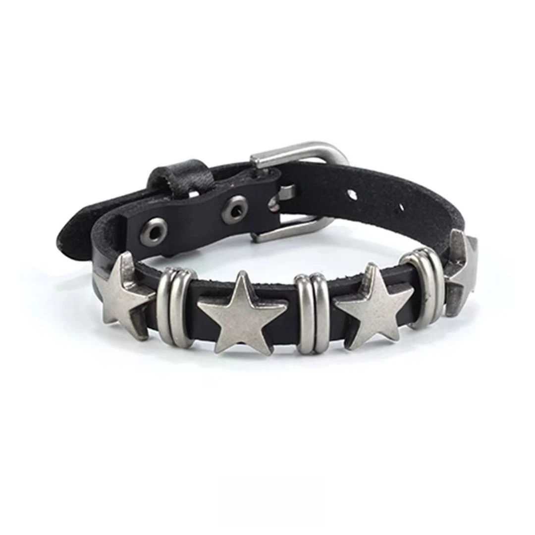 Punk Gothic Individuality Rivet Subculture Star Tide Superimposition Couple Bracelet Wristband Five-pointed star Chain $1.76