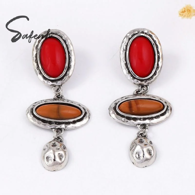 Vintage Textured Colorful Ellipse Spliced Multi Layer Dangle Earrings For Women Fashion Jewelry Holiday Party Gifts $1.24