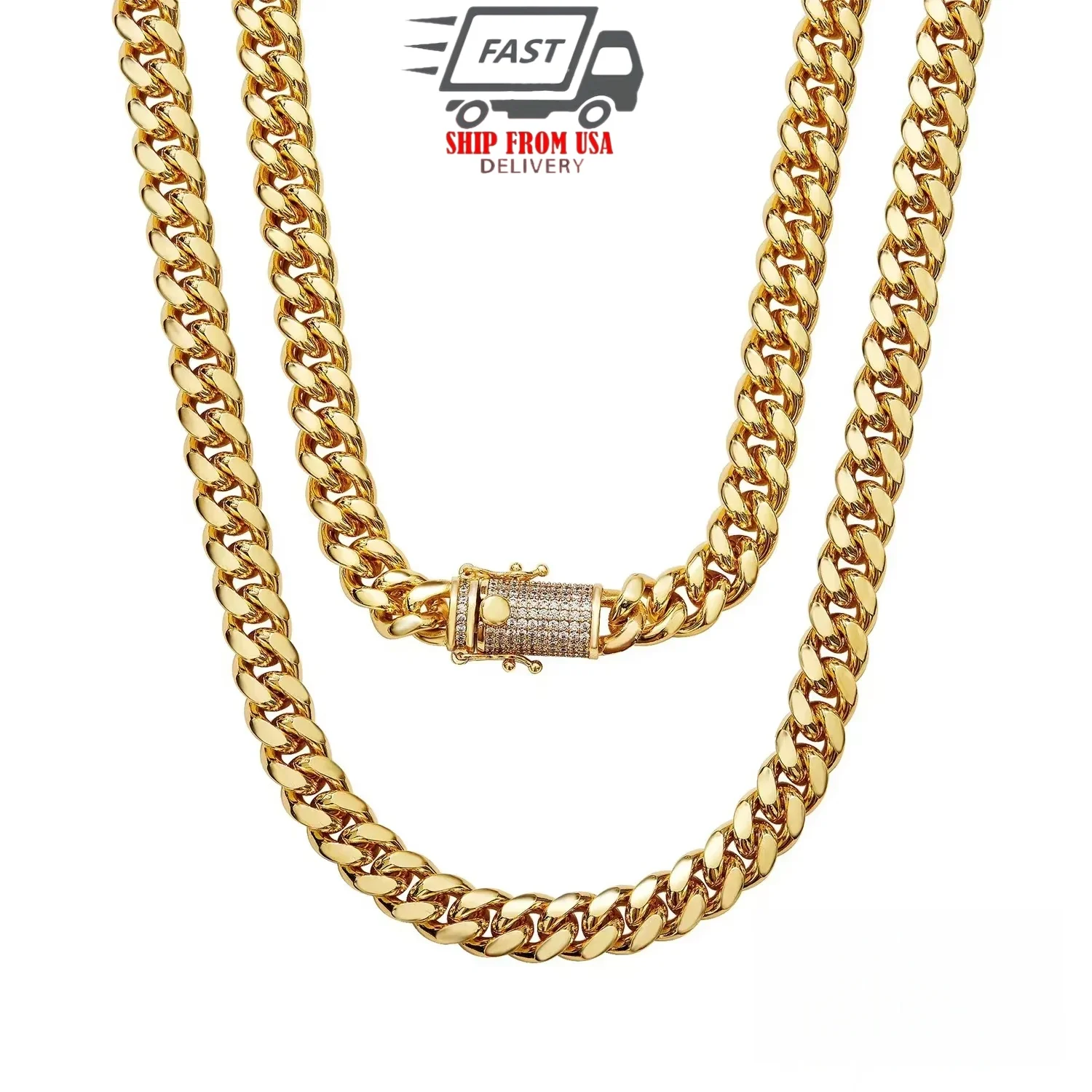 10MM High Quality 18K Gold Plated Stainless Steel Miami Cuban Link Chain - Hip Hop Statement Necklace For Men & Women $22.03