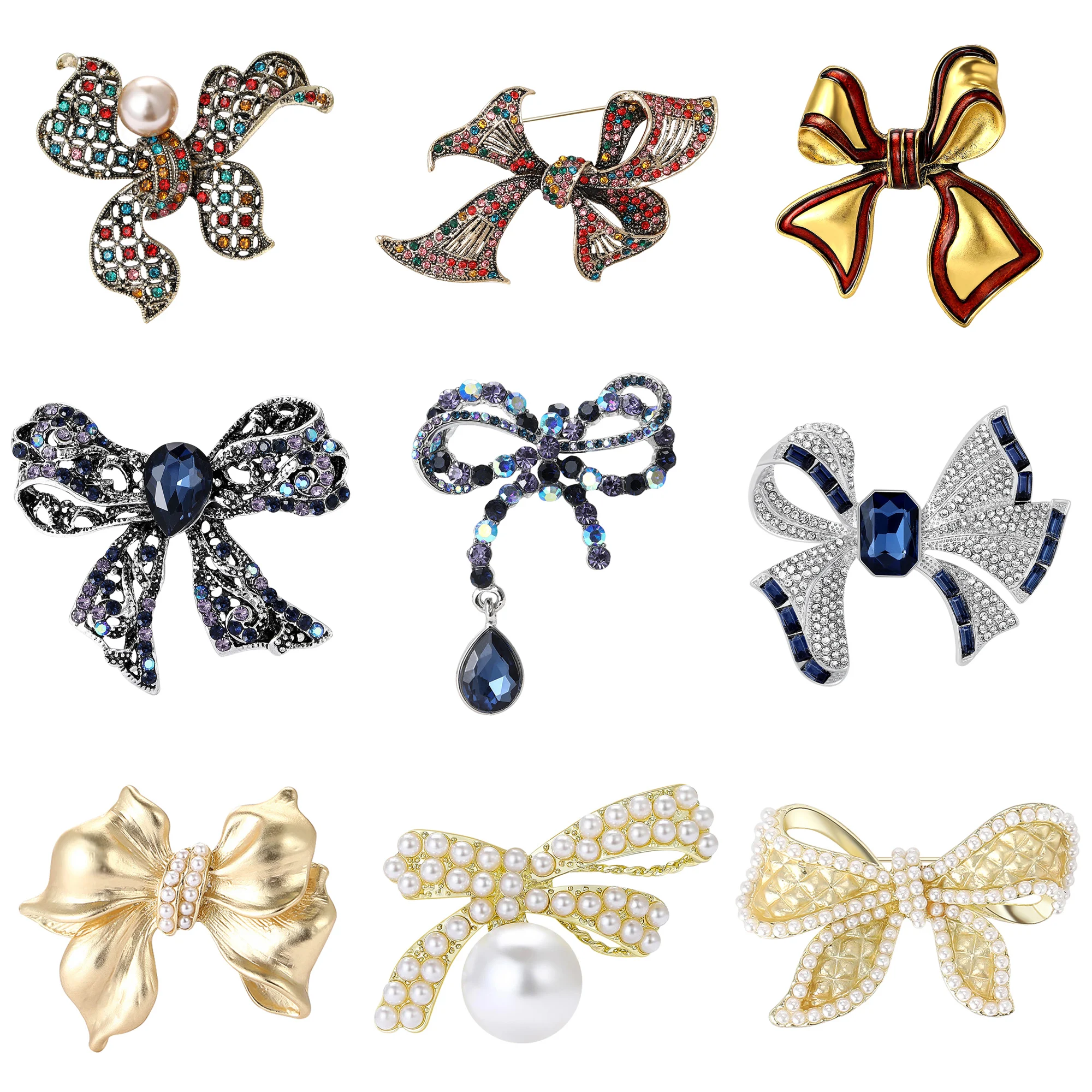 Classic Rhinestone Bow Brooches for Women Unisex Pearl Knot Pins Office Party Friend New Gifts Decoration Jewelry Accessories $1.63