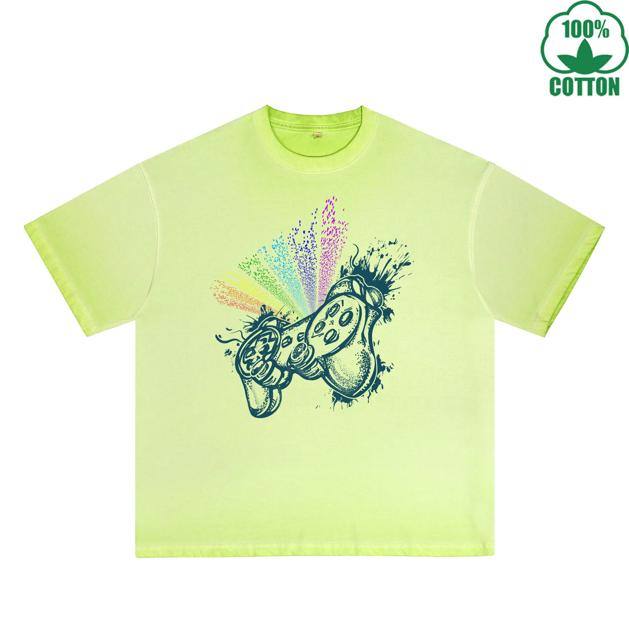 Colorful Game Printed Dirty WashT-Shirt 230G Multicolor Loose Trendy Short Sleeves Fashionable 100%Cotton Top $9.79