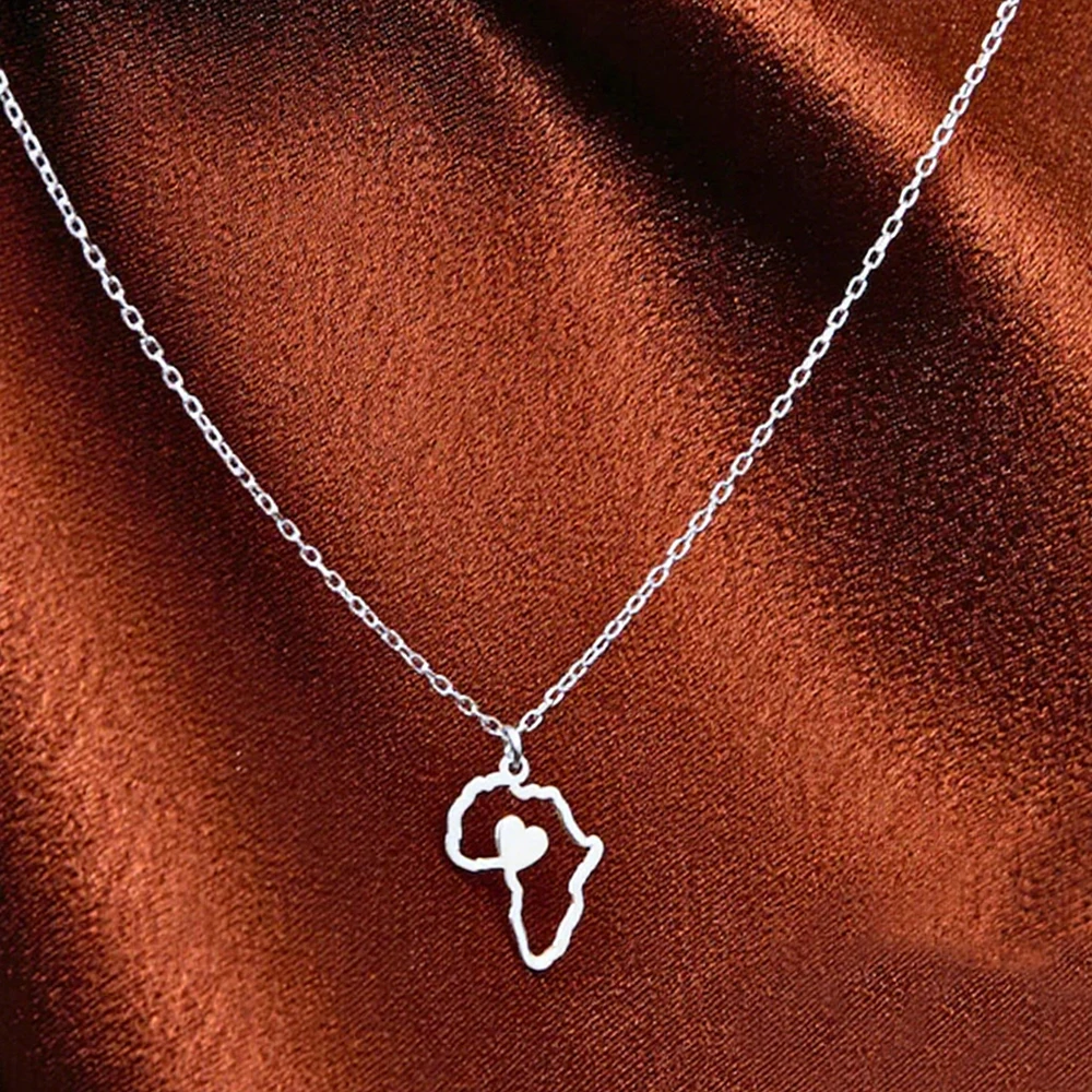 Stainless Steel Necklaces Africa Map Heart Pendant Collar Chain Fashion Necklace For Men And Women African Ethnic Jewelry Party $3.60