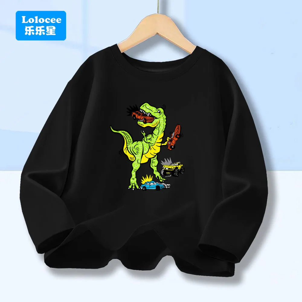 Kids Long Sleeve T-Shirt Cartoon Dinosaur Playing with Cars Print Tee Boys Casual Cotton Top Children's Fashion Clothing KL2 $3.17