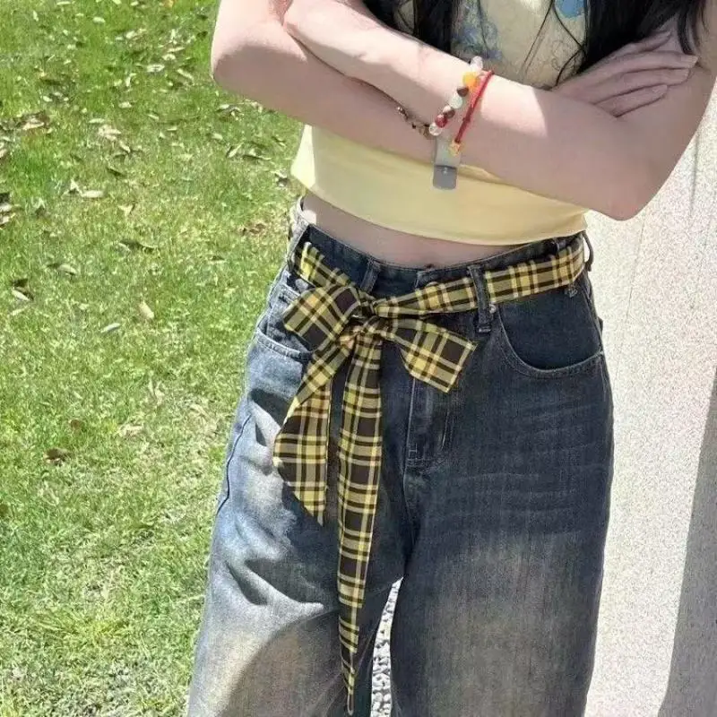 Long Skinny Plaid Waist Belt With Jeans Necktie Scarf Decorative Accessory Personality Trendy Hairband Fashionable Accessory $3.27