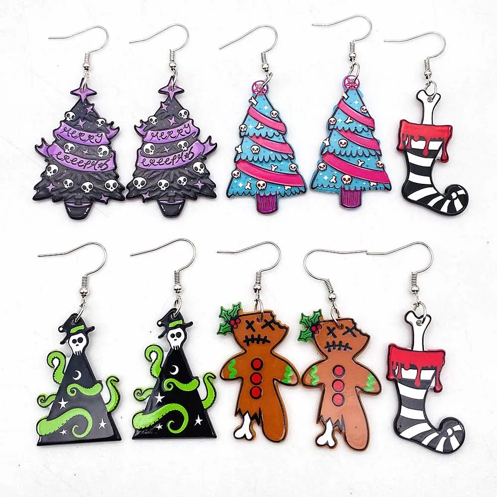 Fashion Christmas Acrylic Earrings Creative Horror Christmas Tree Gingerbread Man Socks for Woman Girl Holiday Birthday Gift $2.26