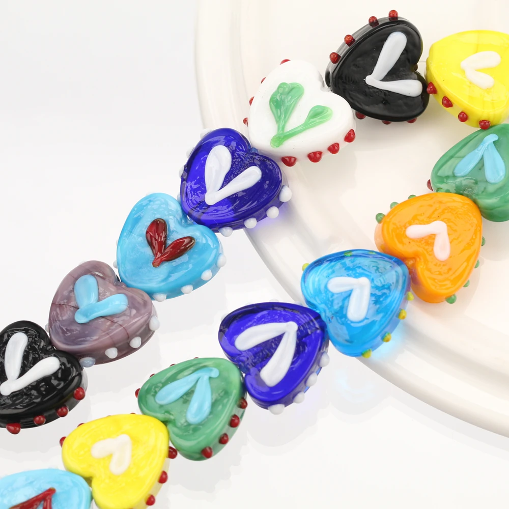 18mm Heart Shape Mixed Lampwork Bead Millefiori Glass Loose Crafts Beads Lot for DIY Jewelry Making Accessories Findings $1.90