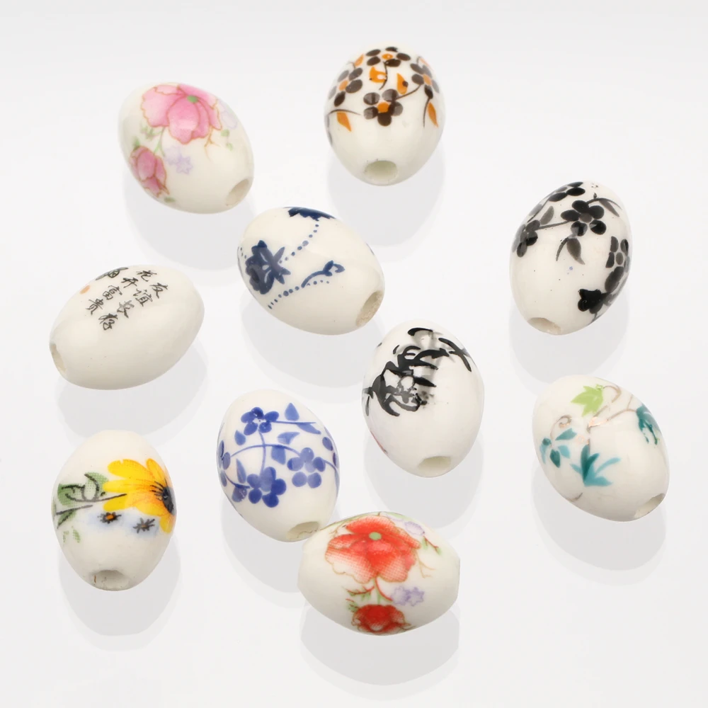 10pcs 15x10mm Oval Shape Flower Patterns Ceramic Porcelain Loose Crafts Beads Lot For Jewelry Making Accessories DIY Findings $1.36