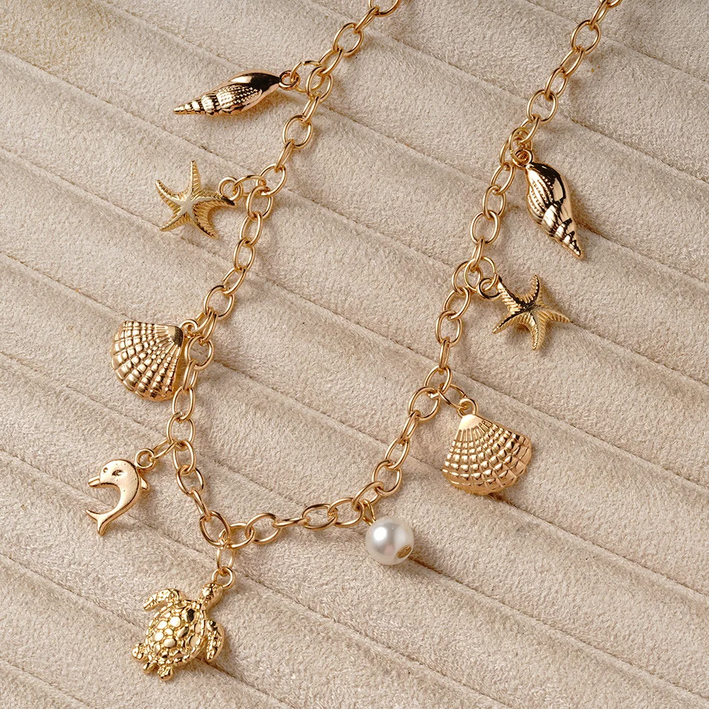 Ocean Theme Alloy Necklace Starfish Shell Sea Turtle Butterfly Pearl Pendant Beach Jewelry Accessories for Women Summer Fashion $4.84