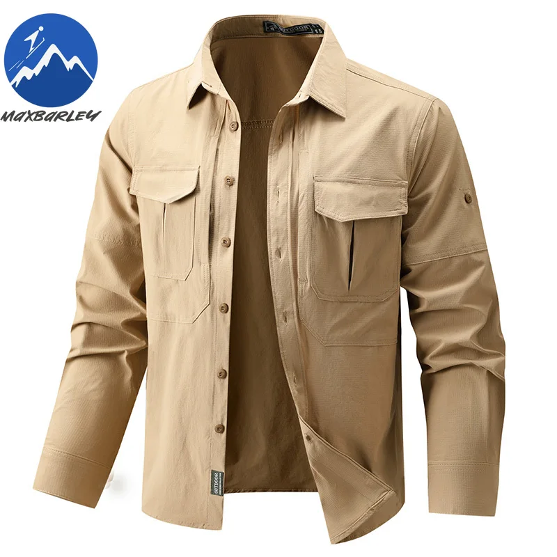 Mens Shirt Spring Autumn Loose Quick Dry Tooling Long Sleeves Fashion Lapel Button Down Design Breathable Comfort Men Jackets $41.59